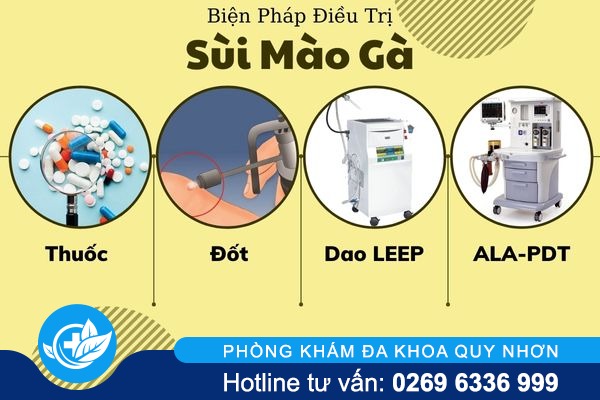 Sùi mào gà càng để lâu càng nguy hiểm và khó phục hồi nên nền y học phát triển đã đẩy mạnh nghiên cứu để tạo ra nhiều biện pháp chữa sùi mào gà hiệu quả. Tuy nhiên, người bệnh cần đến trung tâm chuyên khoa uy tín để thăm khám, xét nghiệm và chọn biện pháp điều trị phù hợp. Hiện nay, Phòng Khám Đa Khoa Quy Nhơn đang đưa vào ứng dụng các biện pháp chữa sùi mào gà hiệu quả, có thể kể đến như: