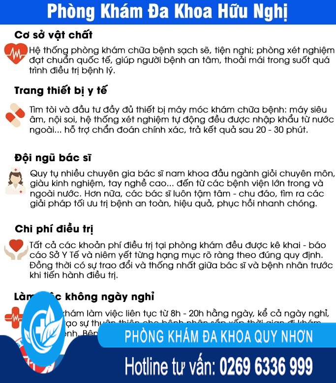**Đặc biệt: Trên tinh thần tương thân tương ái tại Phòng Khám Đa Khoa Quy Nhơn luôn có những chính sách nhân văn sâu sắc, hỗ trợ bệnh nhân ở xa hoặc có hoàn cảnh khó khăn tiền xăng xe, đi lại, sắp xếp chỗ ăn ở miễn phí khi đặt hẹn online…