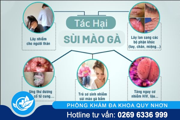 Bệnh sùi mào gà có tính lây lan nhanh chóng và nếu chậm trễ trong điều trị sẽ dẫn đến nhiều hậu quả nghiêm trọng đến đời sống tình dục, khả năng sinh sản và tính mạng của bệnh nhân, cụ thể là hàng loạt tác hại ảnh hưởng nam và nữ giới sau: