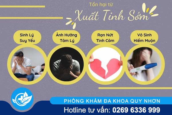 Tâm lý bị ảnh hưởng: Xuất tinh sớm khiến chất lượng cuộc “yêu” giảm sút trầm trọng, không đạt được khoái cảm và hưng phấn đồng thời tinh thần bị ảnh hưởng. Tình trạng này kéo dài sẽ khiến nam giới suy giảm ham muốn tình dục, thậm chí dễ mặc cảm và tự ti.