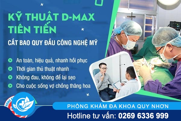 Theo các bác sĩ tại phòng khám cho biết, hiện nay nam giới có thể tiến hành cắt bao quy đầu bằng Kỹ thuật cắt bao quy đầu D-Max. Đây là phương pháp tiên tiến nhất hiện nay trong lĩnh vực y khoa được nhiều nước trên thế giới áp dụng, mang hiệu quả và ưu điểm tốt nhất chỉ có tại Phòng Khám Đa Khoa Quy Nhơn.