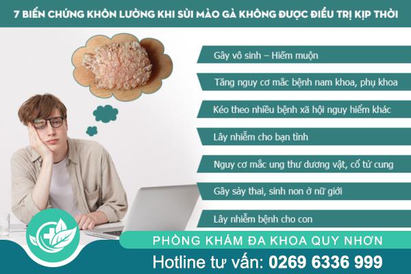 Nếu không được phát hiện và điều trị kịp thời, sùi mào gà có thể tái nhiễm nhiều lần, gây viêm nhiễm, ảnh hưởng đến sức khỏe sinh sản và làm tăng nguy cơ mắc các bệnh lý nguy hiểm liên quan đến ung thư ở một số chủng HPV nguy cơ cao.
