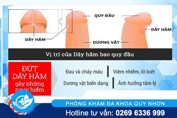 Theo bác sĩ chuyên nam khoa tại Phòng Khám Đa Khoa Quy Nhơn cho biết, hiện tượng đứt dây hãm bao quy đầu thường gặp phải ở những nam giới quan hệ tình dục lần đầu. Hoặc dây hãm bao quy đầu quá dài/quá ngắn nên sẽ không thích ứng được lúc cương dương.