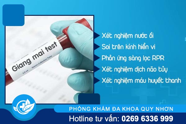 Ngay khi phát hiện những dấu hiệu của bệnh giang mai nên tới các cơ sở y tế chuyên khoa để thăm khám và làm xét nghiệm cần thiết để biết kết quả chính xác. Riêng Phòng Khám Đa Khoa Quy Nhơn đang đưa vào áp dụng hàng loạt phương pháp xét nghiệm giang mai chính xác sau: