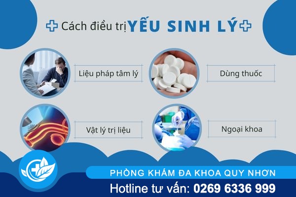 Tại Phòng Khám Đa Khoa Quy Nhơn, các bác sĩ sẽ sau thăm khám xác định nguyên nhân yếu sinh lý của nam giới sẽ quyết định chọn ra biện pháp điều trị phù hợp bao gồm: