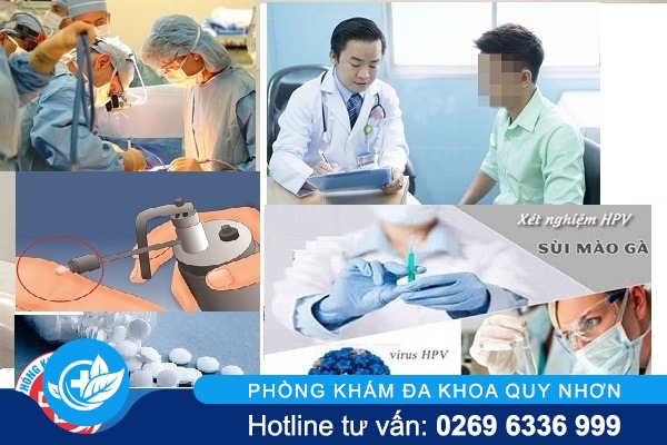 Dùng thuốc: Bác sĩ có thể kê cho bệnh nhân thuốc chấm bên ngoài, thuốc uống nhằm loại bỏ những thương tổn (nốt sùi mào gà) do vi rút HPV gây nên và tăng cường sức đề kháng. Điều trị sùi mào gà bằng thuốc thường được áp dụng cho các bệnh nhân có nốt sùi mào gà nhỏ, vị trí của nốt sùi mào gà là ở bên ngoài, không áp dụng cho các trường hợp bị sùi mào gà ở trong lỗ niệu đạo, hậu môn.