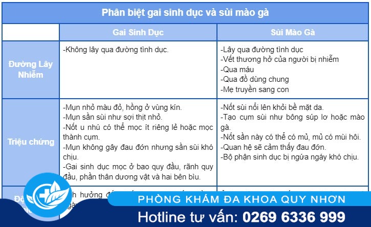Chúng tôi vừa cung cấp thông tin để phân biệt nhanh gai sinh dục và sùi mào gà. Mọi nghi vấn khác hãy gọi vào [sodt] hoặc nhấp >>Tư Vấn Trực Tuyến<< để được tư vấn bài bản hơn.