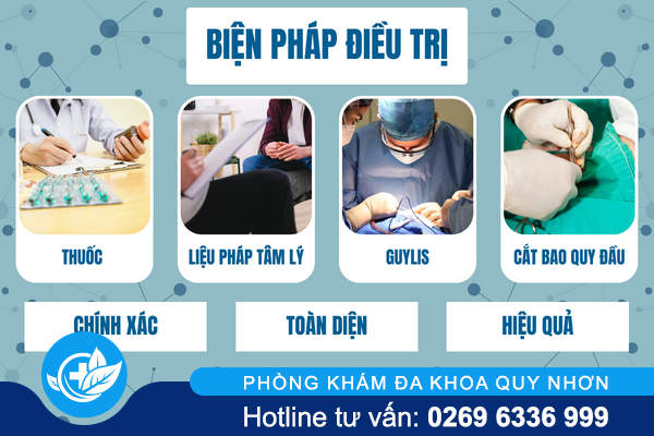 Nam giới khi gặp tình trạng dương vật khó cương/ không cứng có thể đến trực tiếp Phòng Khám Đa Khoa Quy Nhơn (ở Số 140, Đường Nguyễn Thái Học, phường Trần Phú, TP. Quy Nhơn, Bình Định). Đây là địa chỉ khám chữa nam khoa uy tín đã được cấp phép dưới sự giám sát của Sở Y tế nên đảm bảo đầy đủ quyền lợi cho người bệnh. Tại đây, người bệnh sẽ được hướng dẫn các bước kiểm tra và xét nghiệm bài bản, từ đó lên phác đồ điều trị phù hợp với các biện pháp sau: