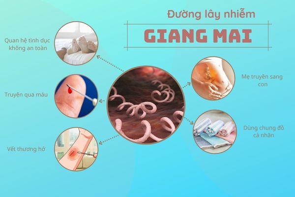 Lây truyền qua các tiếp xúc ngoài da: Trường hợp bệnh nhân mắc bệnh giang mai bị thương và có những vết xước, vết thương hở mà không cẩn thận chạm vào người bình thường thì cũng tạo điều kiện cho xoắn khuẩn xâm nhập vào và gây ra bệnh.