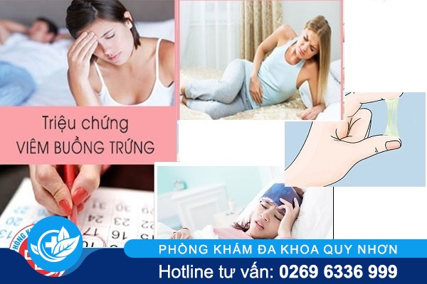 Khí hư bất thường, dịch tiết âm đạo thay đổi cả về số lượng và tính chất, có mùi hôi, đôi khi lẫn mủ. Vùng bụng dưới căng trướng, khi ấn vào thì có cảm giác cứng và đau, cảm giác đau hai bên hố chậu. Ngoài ra, chị em thường có biểu hiện kém ăn, mệt mỏi khiến sụt cân, đôi khi sốt cao,…